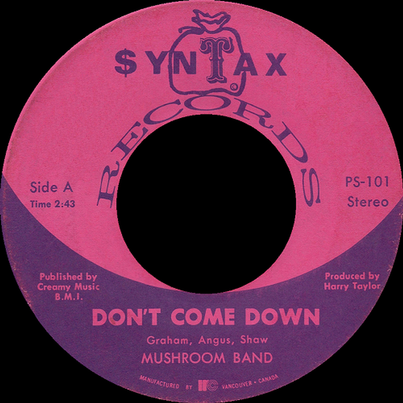 Very little in known about this midwestern Canada outfit that issued one ultra-rare 45 ('Don't Come Down' b/w 'Nobody') on the Syntax label in 1969. Members included Graham Shaw (guitar, organ, vocals), Harry Crowder, Kerry Kulbaba, Pat Cullen and Bill Quinn. The A-side of their sole record is a very nice slice of fuzzed up hard rock that peaked at #3 on CKRC radio's "Canada Top Five" in the spring of '69 and was rightly dubbed as "Canada killer fuzz punk". The outstanding track was written by Shaw who went on to play in several other bands and eventualy became a hugely successful commercial jingle composer.