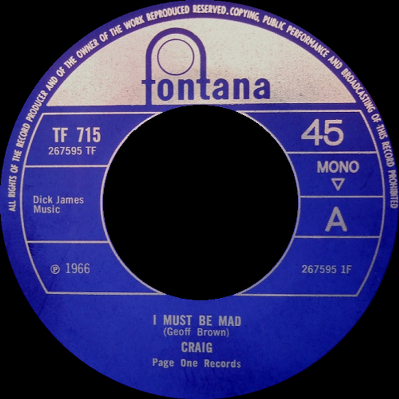 They issued two singles on the Fontana label in '66, with the second 45 containing the outstanding, hard driving psych-mod number 'I Must Be Mad' on the A-side, which was penned by Brown and produced by Larry Page. After the band broke up in 1967, Brown and Pannell went on to become members of Galliard.