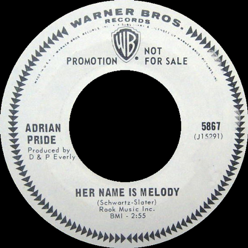 Adrian Pride was actually a psuedonym for singer and songwriter Bernie Schwartz, who released one single ('Her Name Is Melody' b/w 'I Go To Sleep') under this moniker in the fall of 1966. Schwartz, and L.A. native, had been in the music business since the early 60s and also issued singles under the pseudonyms Don Atello and Bernie Ballentine. He had a tight relationship with Don and Phil Everly (the Everly Brothers) who in fact produced the Adrian Pride 45.