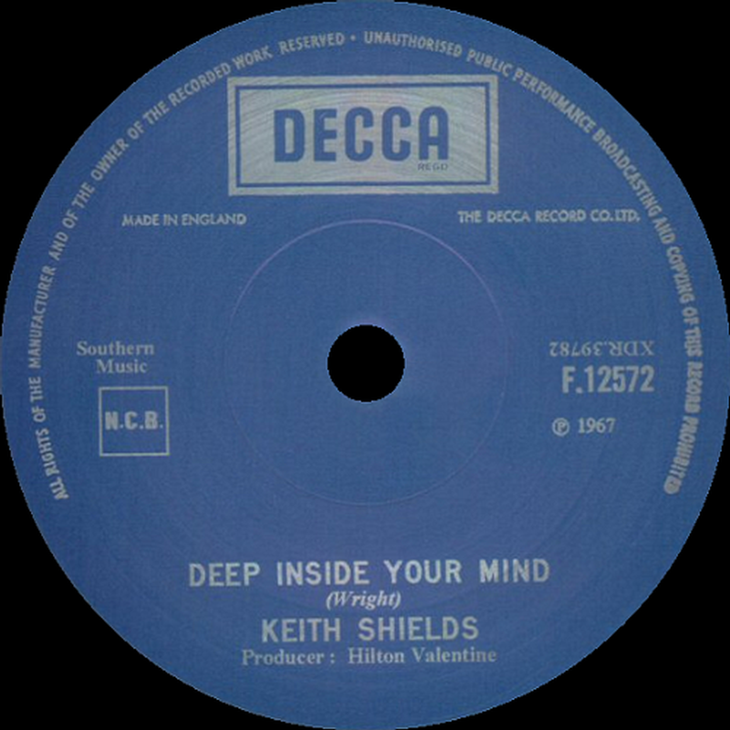 Shields and the Wildcats played all over northern England for about four years until the autumn of 1963 when Valentine decided to leave and go play in the Alan Price Combo, soon to become the Animals. Shields then played mainly solo around the Newcastle area for a few years until deciding to get back in touch with Valentine and Wright. Upon relocating to London, he reconnected with Valentine, who was now out of the Animals and making a name for himself as a record producer. Wright was also now free and offered to become Shield's manager. Between the two, the were able to secure Keith a record deal with Decca and issue a debut 45 in early 1967 ('Hey Gyp (Dig The Slowness)' b/w 'Deep Inside Your Mind'). The A-side is a Donovan cover, while the flip included here on TWOS was composed by Wright. Two more singles followed later that year, but didn't sell that well prompting him to exit the music scene.