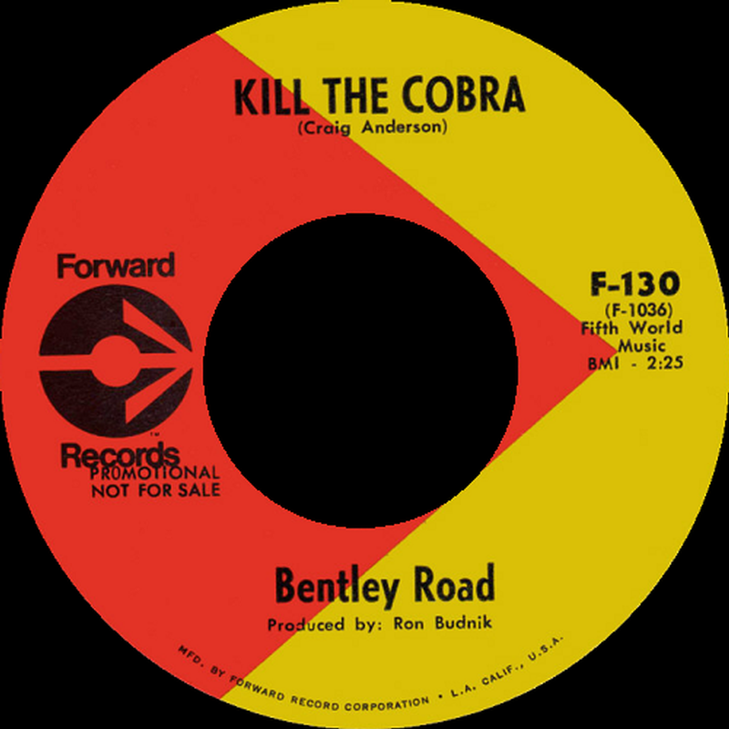 Not able to make it big in Fresno, the band splintered with Craig Anderson, Erickson, Bartell and new member David Nyberg (drums) relocating to L.A., and changing their name to Anderson. They played the club scene, including the Wine Cellar in Westwood. The group was finally discovered by Steppenwolf bassist Nick St. Nicholas who became their manager. They then changed their name to Bentley Road (after a song that Craig Anderson had written) and issued one 45 (the outstanding and highly original Anderson penned 'Kill The Cobra' b/w 'Michael, Michael') on the Forward label. The record was produced by Ron "Buddy" Budnik, who had also written the B-side. Unfortunately it didn't sell well, but the group forged on, continuing to play together until 1975! They recently reunited and are planning the release of a 12-track LP of original songs in the near future.