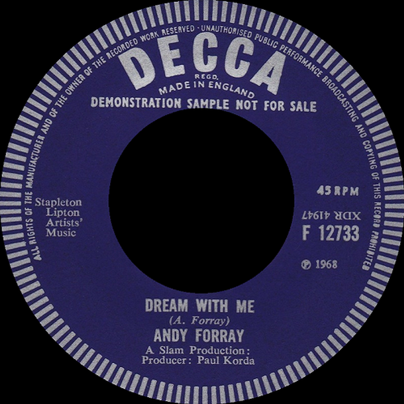 Andy Forray, although sometimes mistaken as an Englishman, was actually born in Greenville, SC, and after being raised in Brooklyn, NY, relocated to London in 1966 to start a music career. He issued four singles in 1968 on three major labels (Parlophone, Decca and Fontana) with the third including the excellent 'Dream With Me' on its B-side.