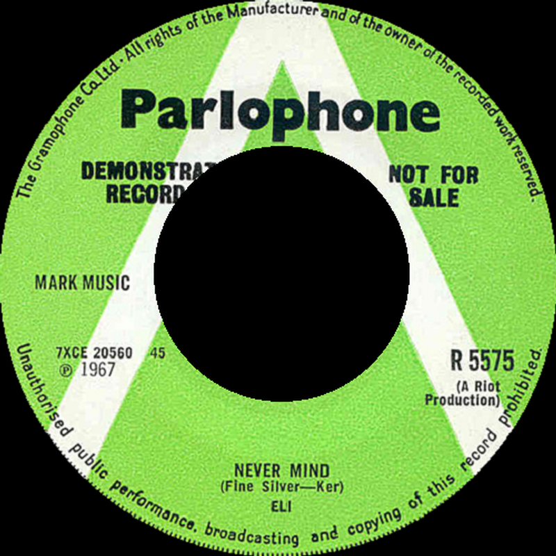 In early 1967, he recorded and released his one and only 45 (the jazzy 'Never Mind' b/w 'I'll Be Looking Out For You') on the Parlophone label, which had the misfortune of being issued on the exact same day as The Beatles 'Strawberry Fields Forever' single, causing it to be overshadowed by the Fab Four and thus to sell poorly. As a side note, both sides of the record were written by future Excelsior Spring members Mike Finesilver (bass) and Peter Ker (guitar, flute), who also played on it. Other musicians that supported the project were Vincent Crane (keyboard) and Drachen Theaker (drums), who would both go on to join the Crazy World Of Arthur Brown later in '67. Unfortunately another official release by Elli was not to be, but he continued recording demos into 1970.