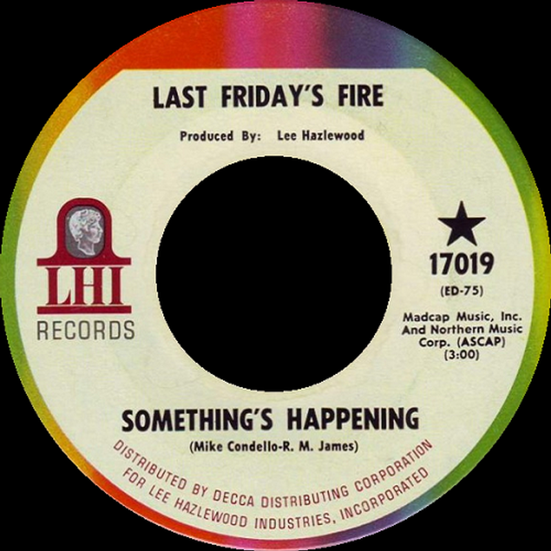Last Friday's Fire was one of Mike Condello's (guitar) bands from Phoenix, AZ that was signed to Lee Hazelwood's LHI Records in early 1967. Besides Condello, the only other confirmed member of the ensemble was Lynn Castle (vocals). The group was named somewhat darkly by Hazelwood after the Apollo 1 launch pad fire of January 27, 1967, which occurred a week before the ensemble was assembled for its first sessions.