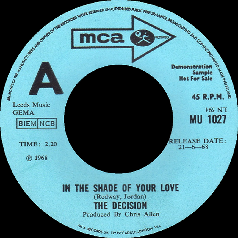 Nothing is known of this British group other than they issued one 45 (the dreamy 'In The Shade Of Your Love' b/w 'Constable Jones') on the MCA label in the summer of 1968. Both tracks on the record are credited to Redway and Jordan, and were produced by Chris Allen.