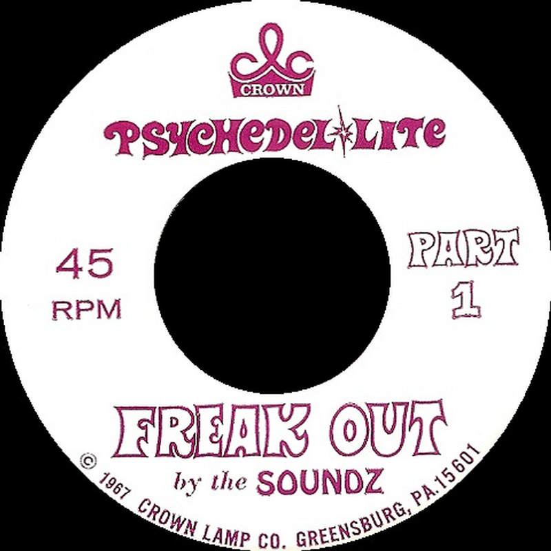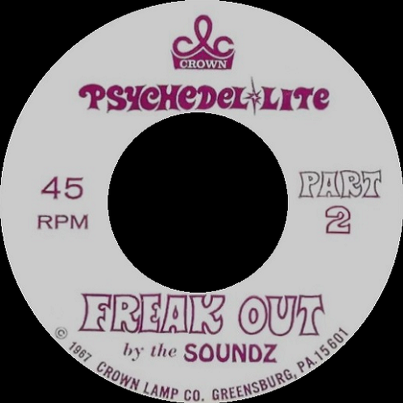 All signs point to this band as actually being a promotional studio effort for the western Pennsylvania based Crown Lamp Company, which was commercializing on the flower power movement by selling a psychedelic light in 1967 that included the Soundz 45 ('Freak Out, Part 1' b/w 'Freak Out, Part 2'). The record is an instrumental and surprisingly very good, with both freaky sides being showcased here on TWOS.